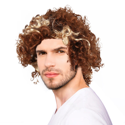 16-inch Light Golden Men's Wig, Fashion Party Holiday Men's Wig Chemical Fiber Wig