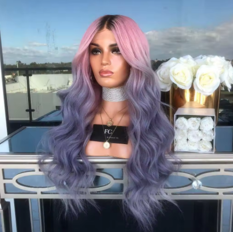 32 Inch Fashion Beautiful Long Loose Wave Ombre Yellow Lace Front Wig For Women Daily Wear
