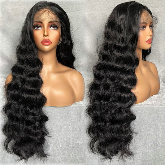 32 Inch Charming Natural Black Long Natural Wave Lace Front Wig For Women Daily Wear