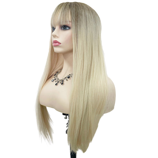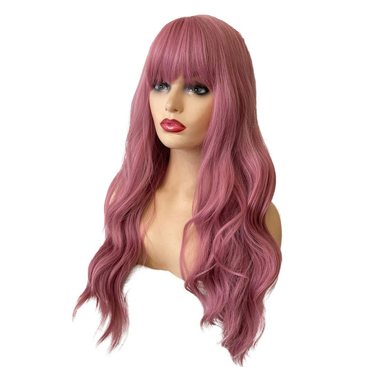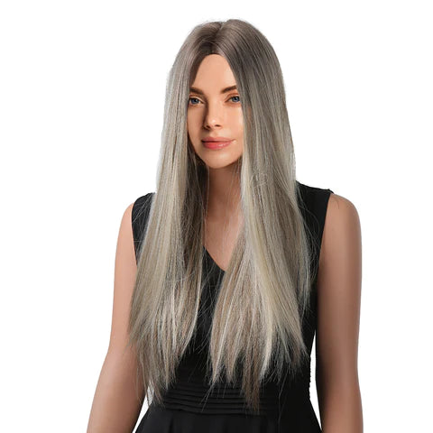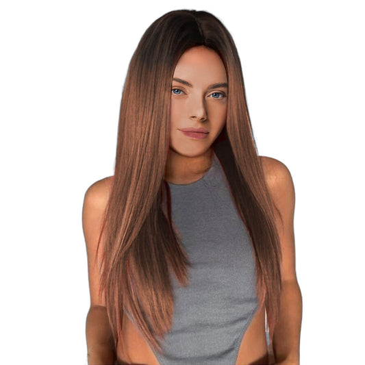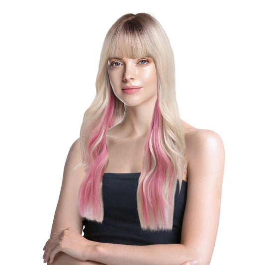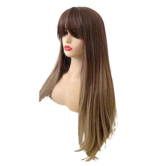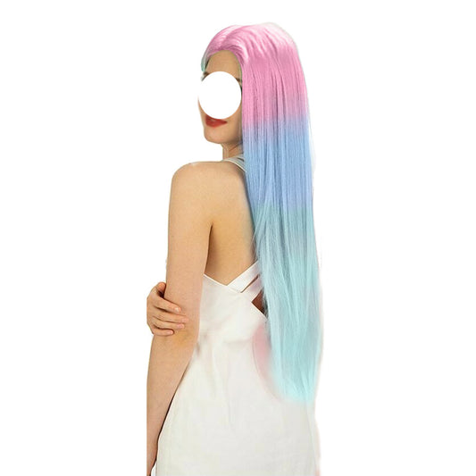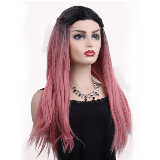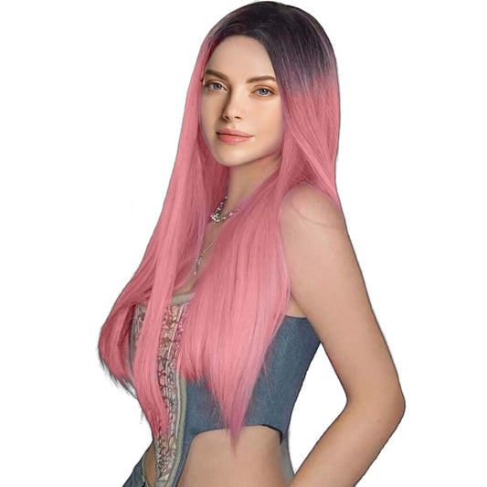28 Inch Long gradient powder Natural Straight Synthetic Wigs for Women Daily Party Wear