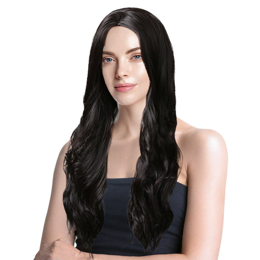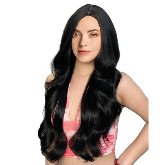 28 Inch Charming Long Glueless Black Natural Wave Synthetic Fiber Wig For Women Daily Use