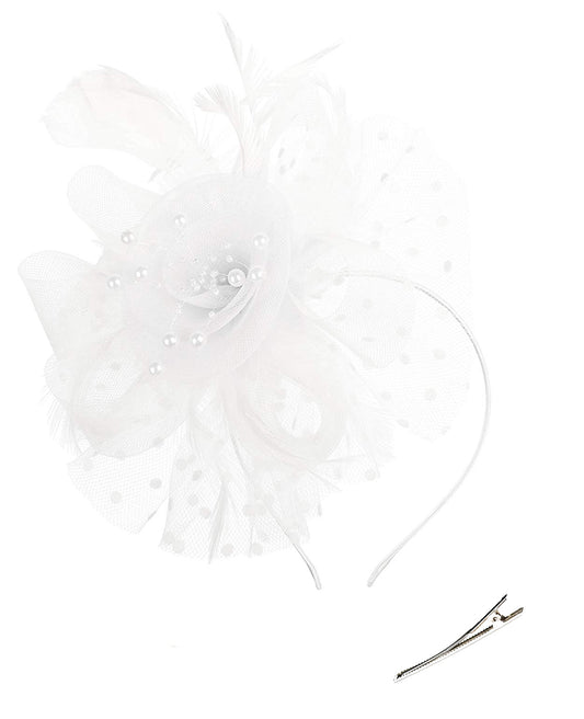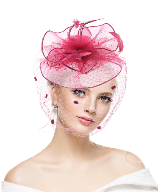 Retro mesh flower headdress bridal feather headdress hair accessories horse racing festival tea party dance hat headband