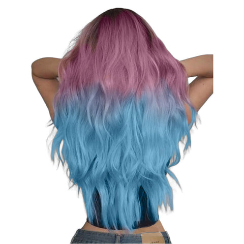 26 Inch Charming Long Loose Wave Ombre Pink And Purple Synthetic Fiber Wig For Women Daily Wear